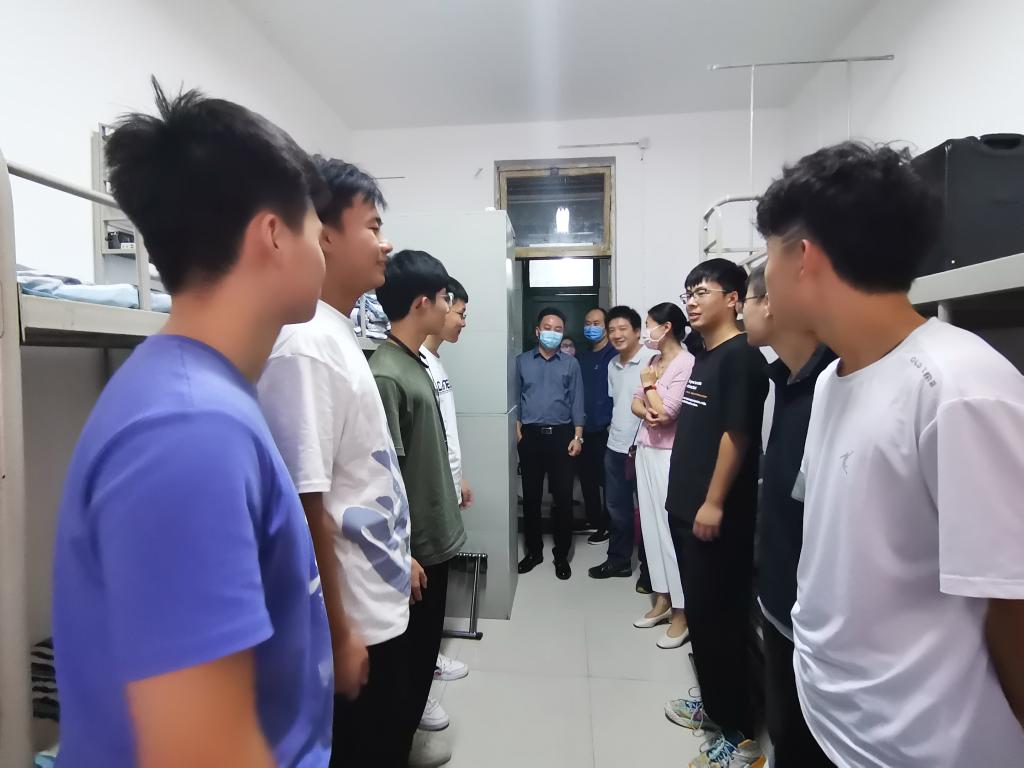 学院领导与新生亲切交谈,把学校的关爱、学院的关怀、老师的关心带给学生。叮嘱学生尽快调整学习状态,熟悉校园环境,投入到新的学习中去。强调疫情期间学校的管理制度,提醒学生加强防控意识,做好个人防护,共同营造健康文明的宿舍环境。并鼓励全体新生在大学学习阶段学好专业技能、锻炼自身本领、努力提升自我,实现个人价值。