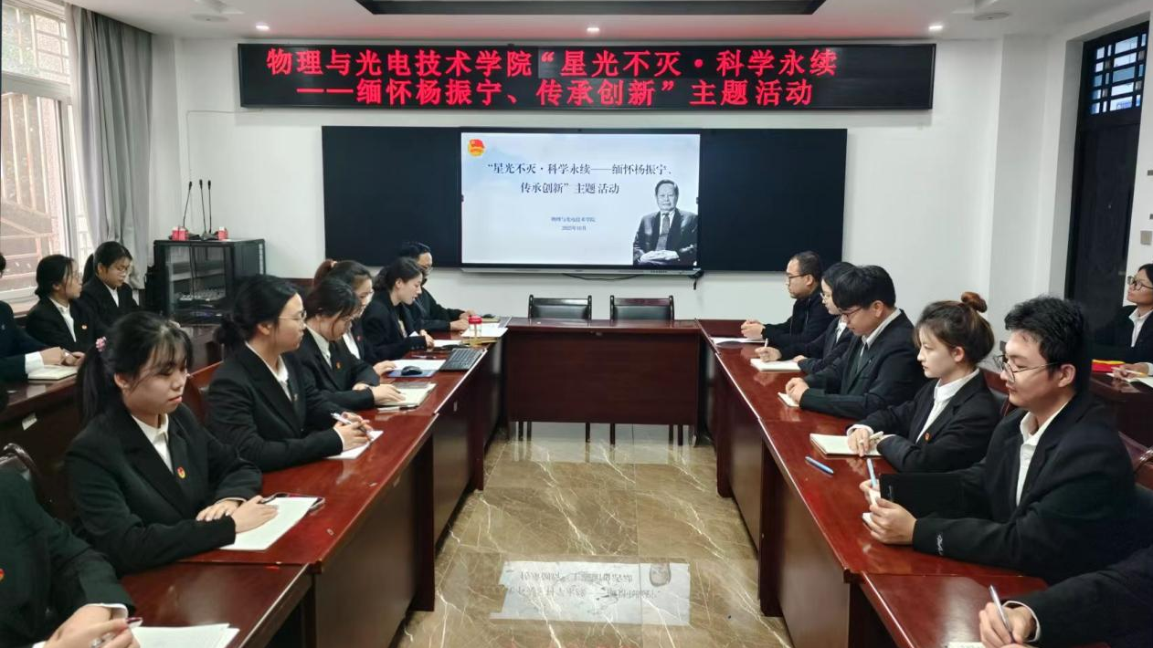 10月21日下午,ok138cn太阳集团在石鼓校区主教学楼207会议室开展“星光不灭·科学永续——缅怀杨振宁、传承创新”主题活动。